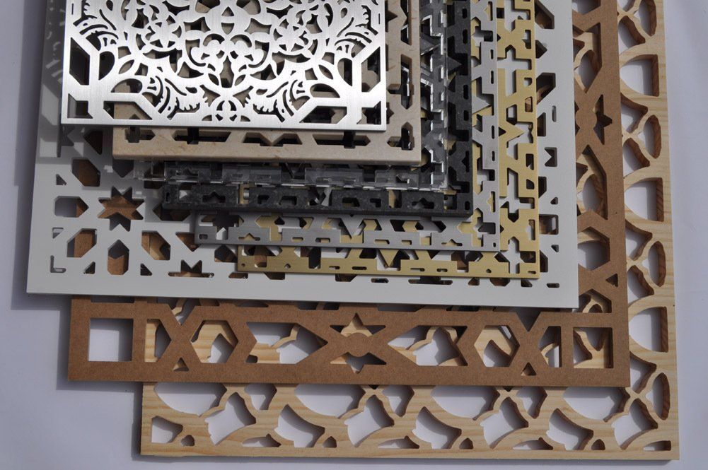En Andaluciart® Celosías y Tallados le ofrecemos una gran variedad de modelos, que usted puede solicitar EN CUALQUIER MEDIDA QUE NECESITE y sobre los diferentes materiales que fabricamos los paneles decorativos de celosías, separadores de ambientes (madera, DM, PVC, metacrilato, aluminio, acero, celosías de latón, bronce, mármol, granito, y celosías de vinilo).