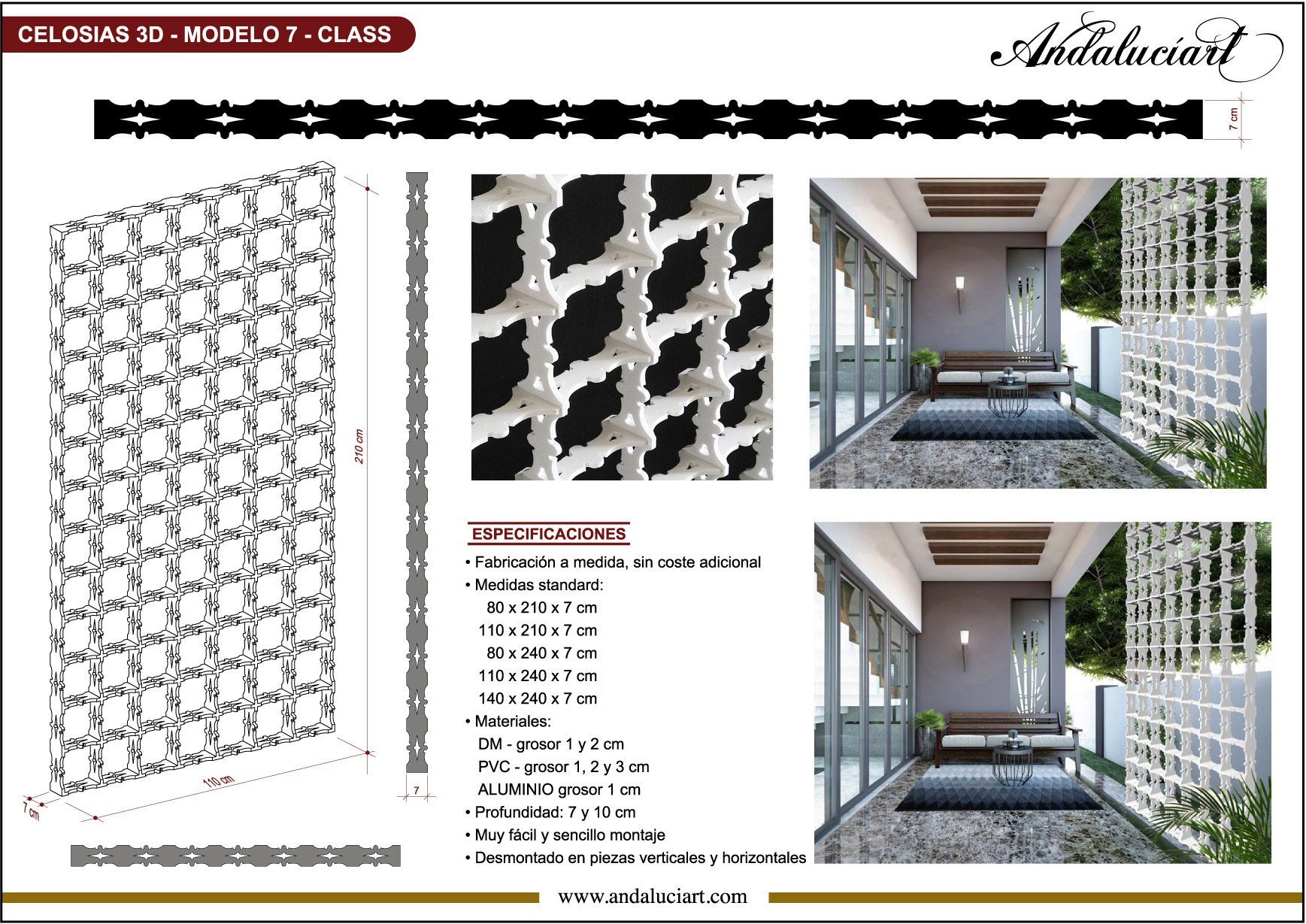 En Andaluciart® Celosías y Tallados le ofrecemos una gran variedad de modelos, que usted puede solicitar EN CUALQUIER MEDIDA QUE NECESITE y sobre los diferentes materiales que fabricamos los paneles decorativos de celosías, separadores de ambientes (madera, DM, PVC, metacrilato, aluminio, acero, celosías de latón, bronce, mármol, granito, y celosías de vinilo).