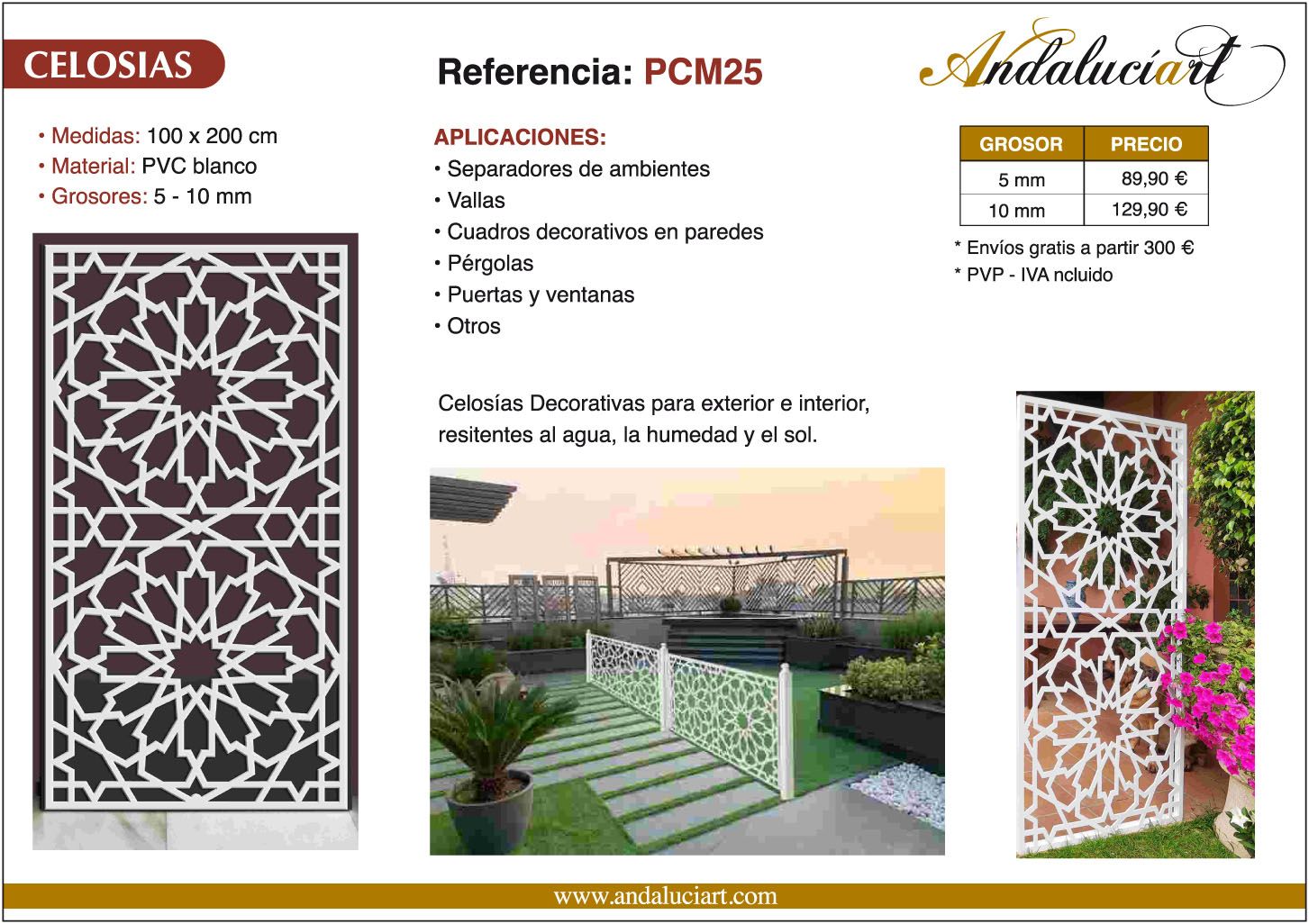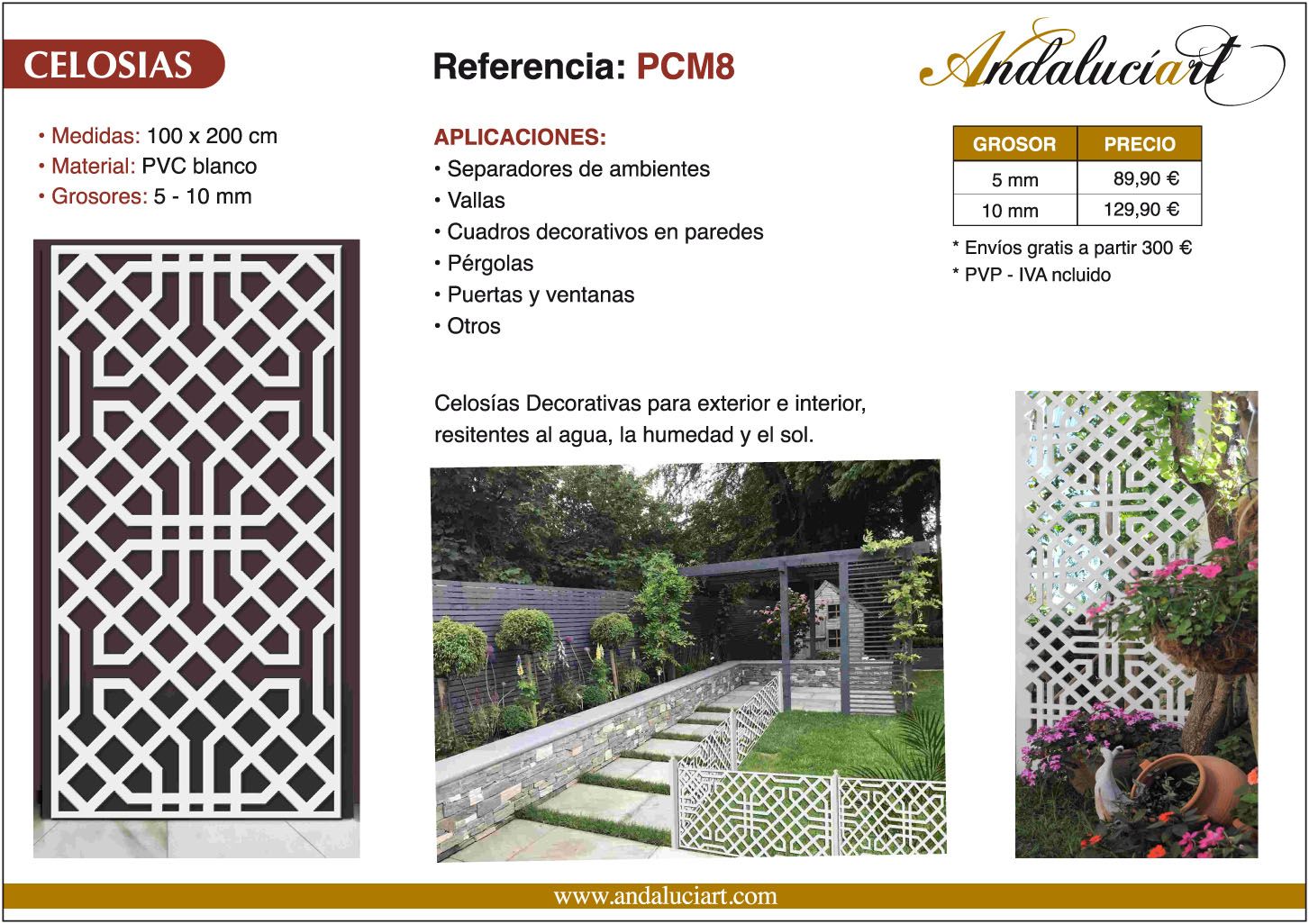 Celosías de madera, aluminio, PVC, y otros materiales. Celosías para terrazas y jardín, ventanas con celosía, pérgolas, vallas de jardín, biombos separadores, etc., una gran variedad de soluciones para decorar con nuestras celosía.