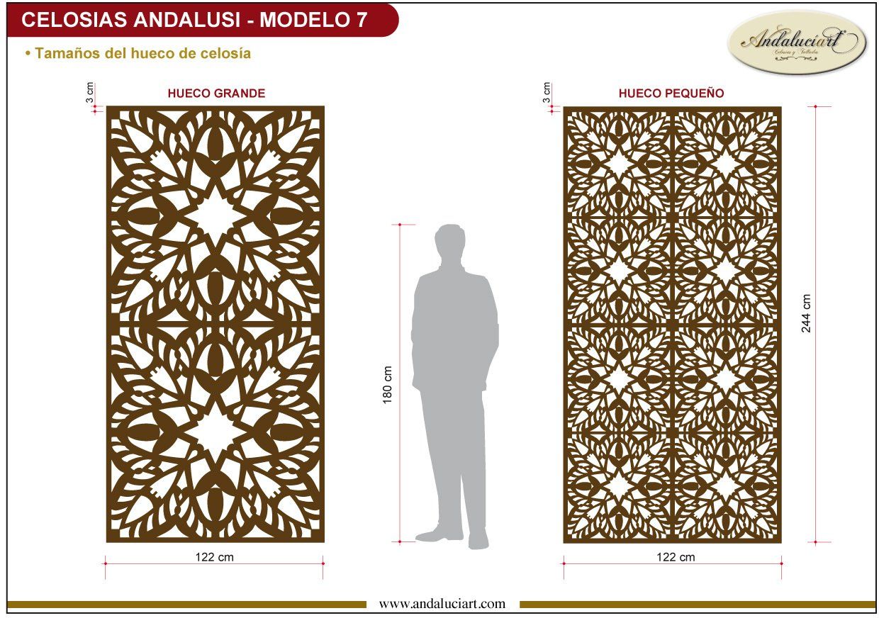 En Andaluciart® Celosías y Tallados le ofrecemos una gran variedad de modelos, que usted puede solicitar EN CUALQUIER MEDIDA QUE NECESITE y sobre los diferentes materiales que fabricamos los paneles decorativos de celosías, separadores de ambientes (madera, DM, PVC, metacrilato, aluminio, acero, celosías de latón, bronce, mármol, granito, y celosías de vinilo).