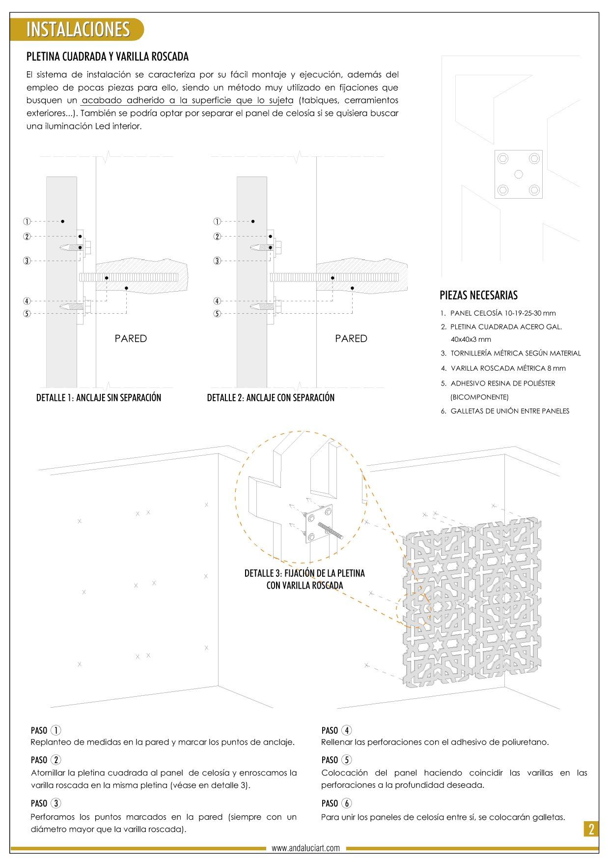 2. Montaje con Pletina cuadrada y varilla roscada