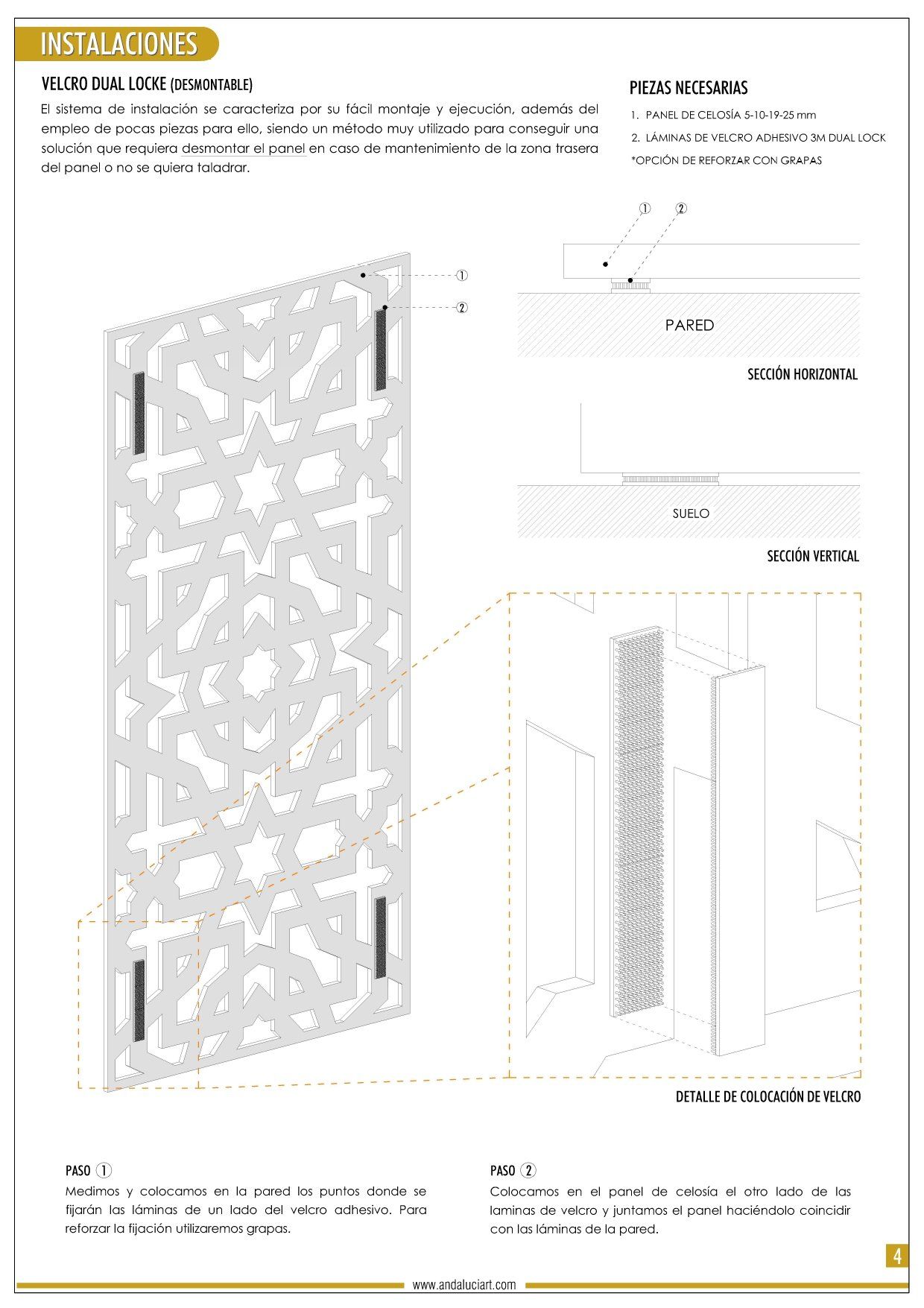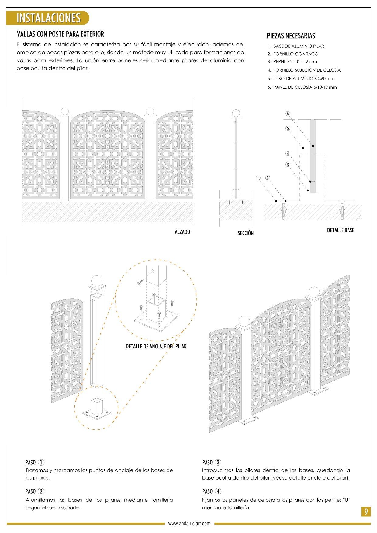 MODELOS · MATERIALES · MEDIDAS · COLORES · INSTALACIÓN
